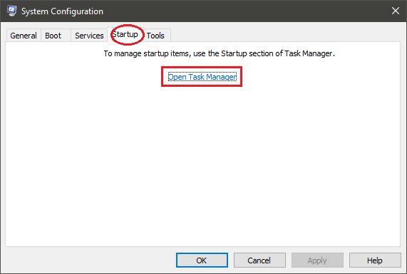 Cũng trong cửa số System Configuration, hãy click chọn tab Startup sau đó chọn ‘Open task manager‘