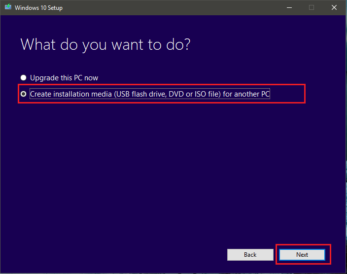 5. Tại đây, nếu bạn muốn tạo một USB cài đặt Windows 10 một cách tự động thì chọn USB flash drive và click next => sang bước 6