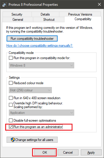 Cách 2: Bạn cũng click chuột phải và Properties => chọn tab Compatibility và chọn Run as admin.. sau đó OK.(chỉ làm 1 lần duy nhất).